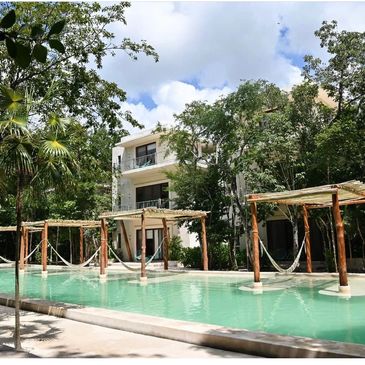 Water Cleanses, Water Heals. Gather with people around the pool, take a deep dive and realize that you have arrived. Surrounded by the jungle, the pools invite you to relax, connect and refresh. Take a deep breath, dive and immerse yourself.